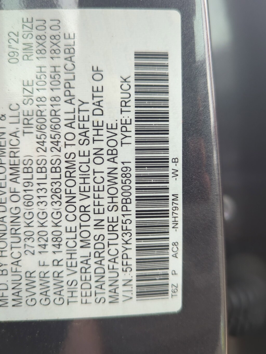 - Front tires: 245/60HR18.0