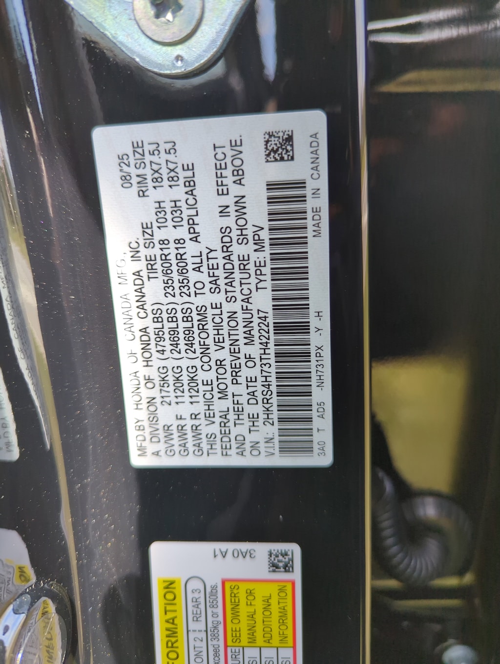 - Rear tires: 235/60HR18.0