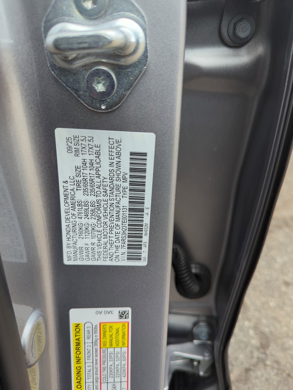 - Front tires: 235/65HR17.0
