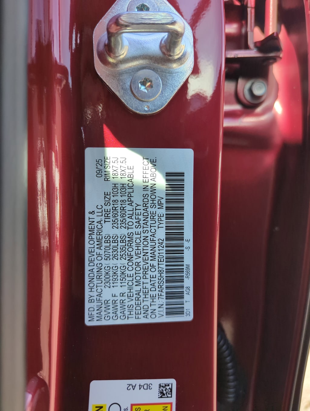 - Front tires: 235/60HR18.0